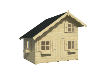 La maisonnette enfant en bois Lola séduit par son architecture soignée et originale avec toit à double pente asymétrique et demi-étage intérieur, offrant un véritable espace de jeu dans le jardin. Avec ses quatre fenêtres, ses volets décoratifs en bois et ses jardinières intégrées, elle reproduit le charme d’une vraie petite maison adaptée aux enfants.