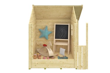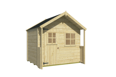 Sa porte avec ouverture vitrée en Plexiglas et sa fenêtre latérale apportent de la luminosité, tandis que son petit auvent avec garde-corps décoratif apporte une touche esthétique douce et accueillante. Le prix indiqué correspond à la structure de base de la maisonnette.