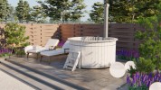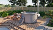 De forme arrondie, il s’agit d’un bain dont l’eau est chauffée rapidement grâce à un poêle à bois intérieur ou extérieur.
