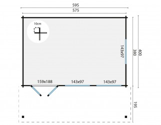 Chalet TORTSEN en sapin non traité de 21,80 m2 avec auvent 11,20 m2.