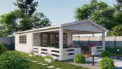 Chalet SHEFFIELD en sapin non traité de 27,00 m2 avec terrasse de 21,80 m2.