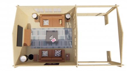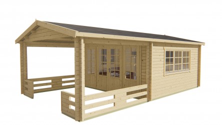 Chalet LEEDS en sapin non traité de 17,60 m2 avec terrasse de 12,20 m2.