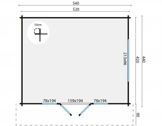 Possibilité de rehausser la toiture en ajoutant des madriers supplémentaires.