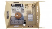 Possibilité de rehausser la toiture en ajoutant des madriers supplémentaires.