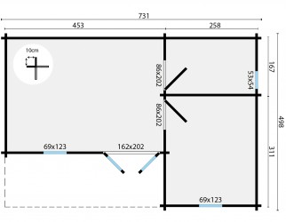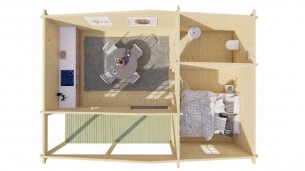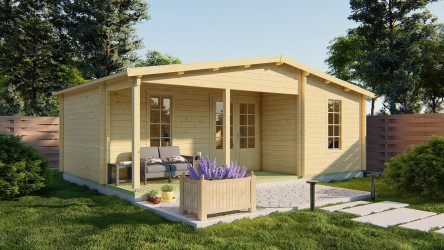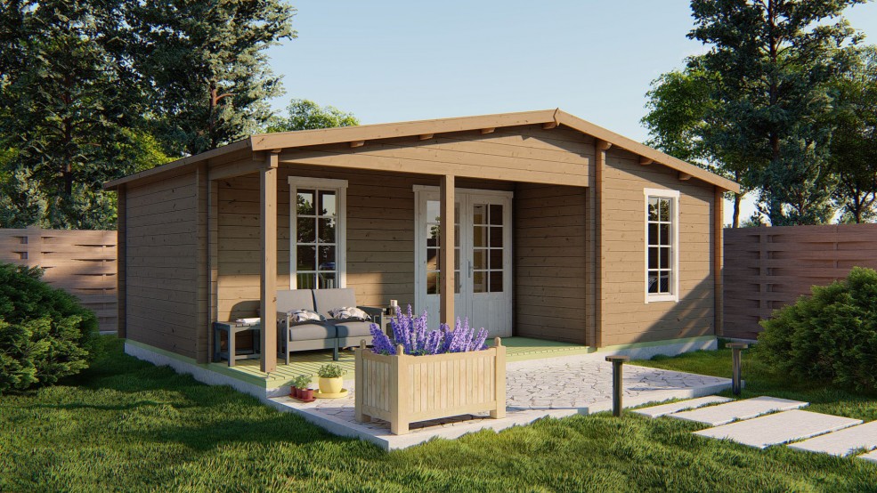Chalet OLLIE en sapin non traité de 25,20 m2 avec auvent de 6,20 m2.