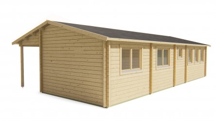 Chalet LETTERKENNY en sapin non traité de 46,60 m2 avec auvent de 12,30 m2.