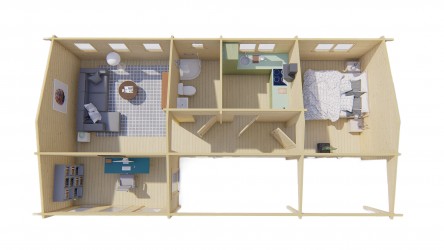 Possibilité de rehausser la toiture en ajoutant des madriers supplémentaires.