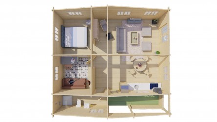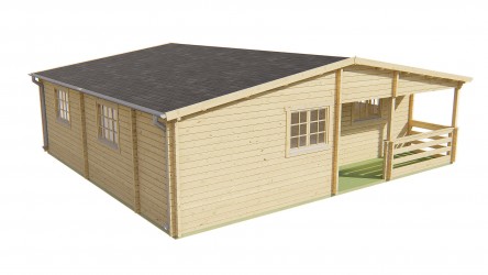 Chalet AZORES en sapin non traité de 65,20 m2 avec terrasse de 7,20 m2.