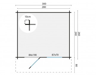 Dimensions des fondations : 280x240 cm