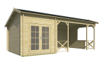 Chalet KUKKA en sapin non traité de 7,20 m2 avec auvent de 14,40 m2.