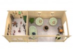 Possibilité de rehausser la toiture en ajoutant des madriers supplémentaires.