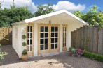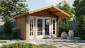 Livré avec 1 porte extérieure vitrée double, en simple vitrage, 2 fenêtres fixes et 1 ouvrante vitrage simple.