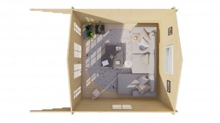 Possibilité de rehausser la toiture en ajoutant des madriers supplémentaires.