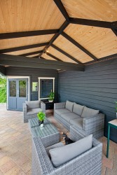 Possibilité de rehausser la toiture en ajoutant des madriers supplémentaires.