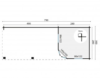 Chalet BERTIL en sapin non traité de 6,70 m2 avec auvent de 13,70 m2.