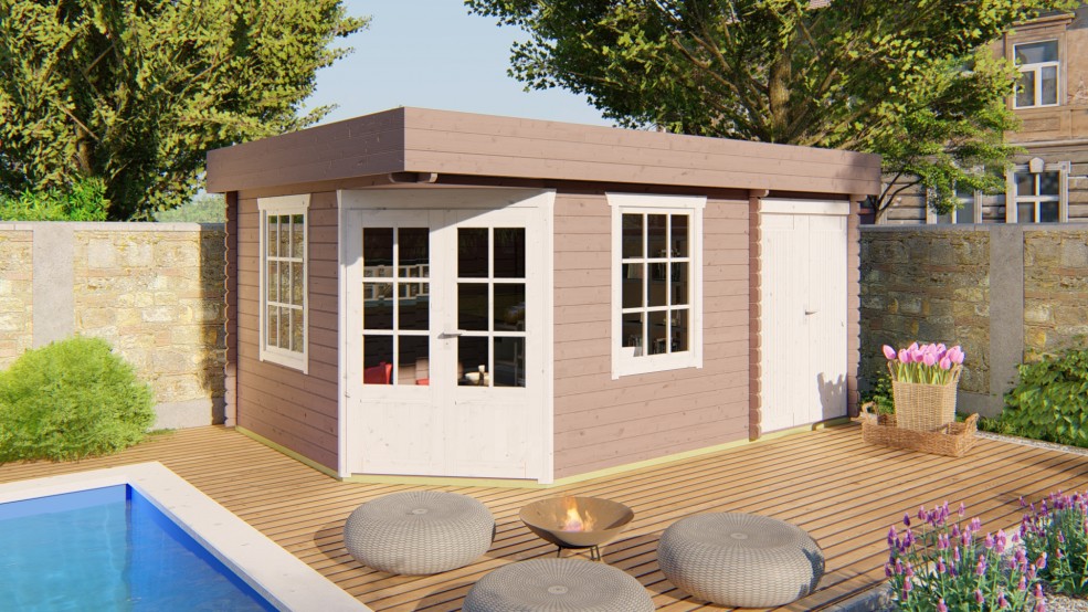 Chalet HELGE en sapin non traité de 10,90 m2 avec annexe de 4,60.