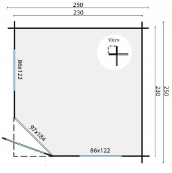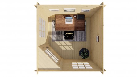 Possibilité de rehausser la toiture en ajoutant des madriers supplémentaires.