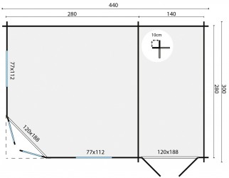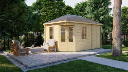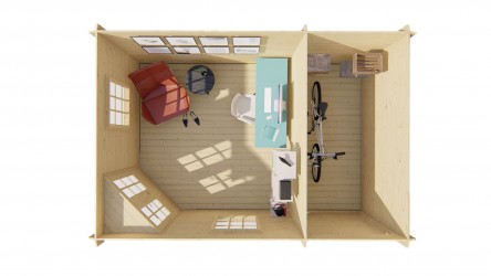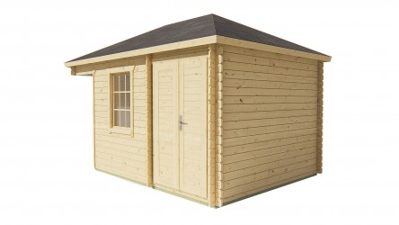 Chalet SIGRID en sapin non traité de 7,80 m2 avec annexe de 3,60 m2.