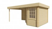 Chalet STIG en sapin non traité de 6,40 m2 avec auvent de 6,40 m2.