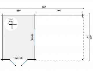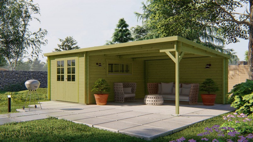 Chalet ANTON en sapin imprégné vert de 10,20 m2 avec terrasse de 16,00 m2.
