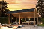 Bâtiment modulaire Bergen type 2 XL naturel (option noir) en mélèze/douglas.