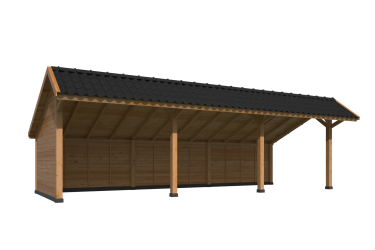 Bâtiment modulaire Bergen type 6 XL naturel (option noir) en mélèze/douglas.