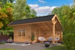 Bâtiment modulaire Bergen type 3 XL naturel (option noir) en mélèze/douglas.