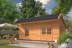 Bâtiment modulaire Bergen type 4 XL naturel (option noir) en mélèze/douglas.