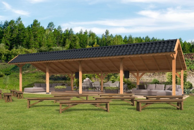 Bâtiment modulaire Bergen type 9 XL naturel en mélèze/douglas.