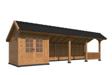 Bâtiment modulaire Bergen type 11 L naturel (option noir) en mélèze/douglas.
