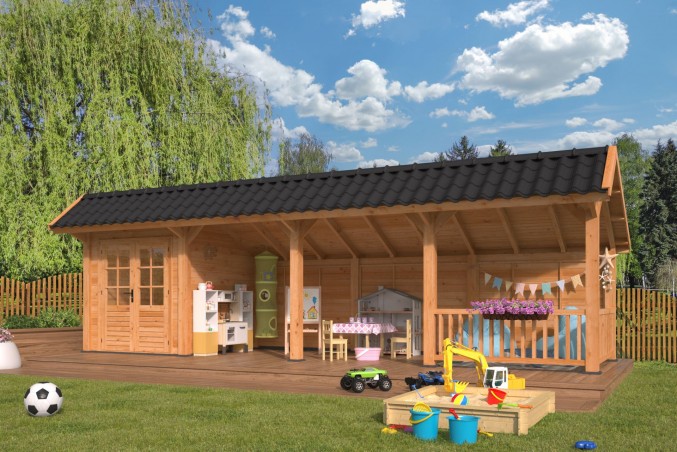 Bâtiment modulaire Bergen type 11 L naturel (option noir) en mélèze/douglas.