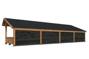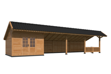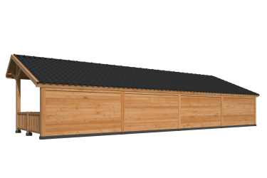 Bâtiment modulaire Bergen type 11 XL naturel (option noir) en mélèze/douglas.