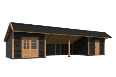 Bâtiment modulaire Bergen type 12 XL naturel (option noir) en mélèze/douglas.
