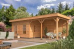 Bâtiment modulaire Oslo type 11 L naturel (option noir) en mélèze/douglas.