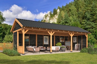 Bâtiment modulaire Hamar type 6 XL naturel (option noir) en mélèze/douglas.